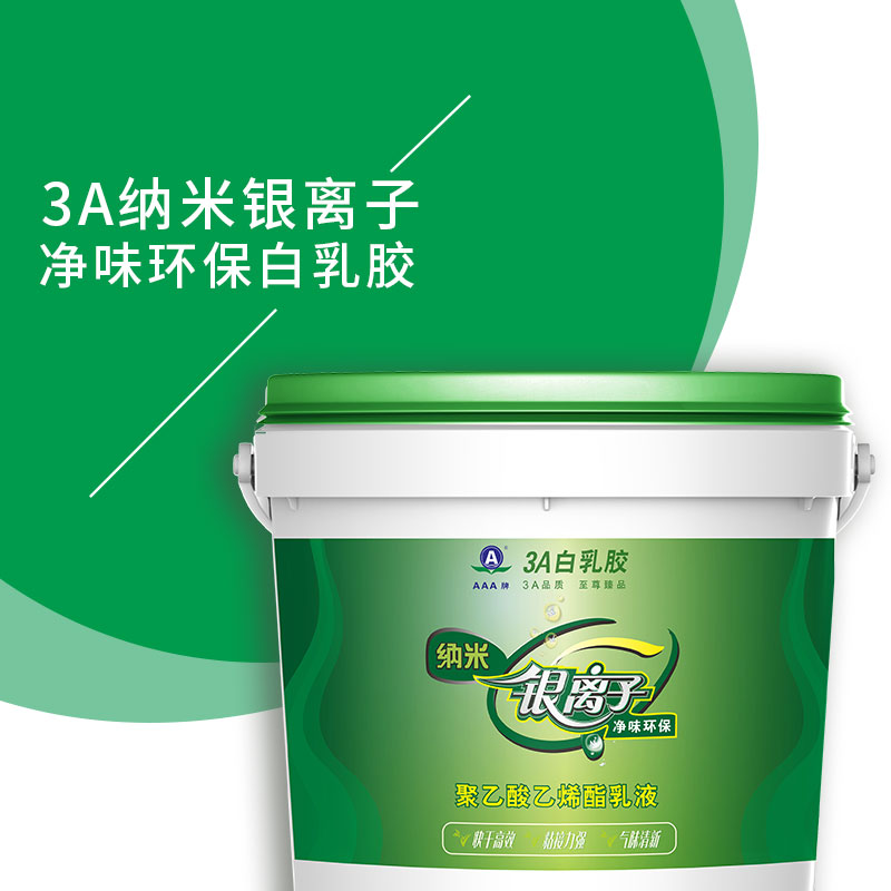 3A環保漆納米銀離子環保白膠-添加高科技納米銀離子,通過接觸反應和光催反應,使產品更環保。本品環保無毒、不燃,是由醋酸乙烯酯乳化聚合而成的優質粘合劑,具有高粘性能。